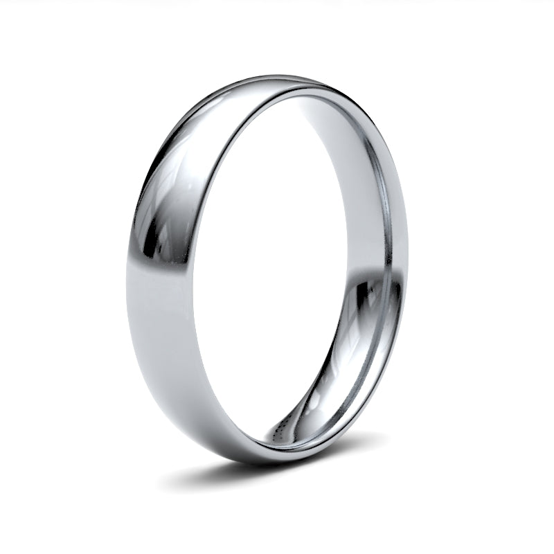 9ct White Gold 4mm Lightweight Court Profile Mirror Finish Wedding Ring