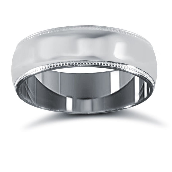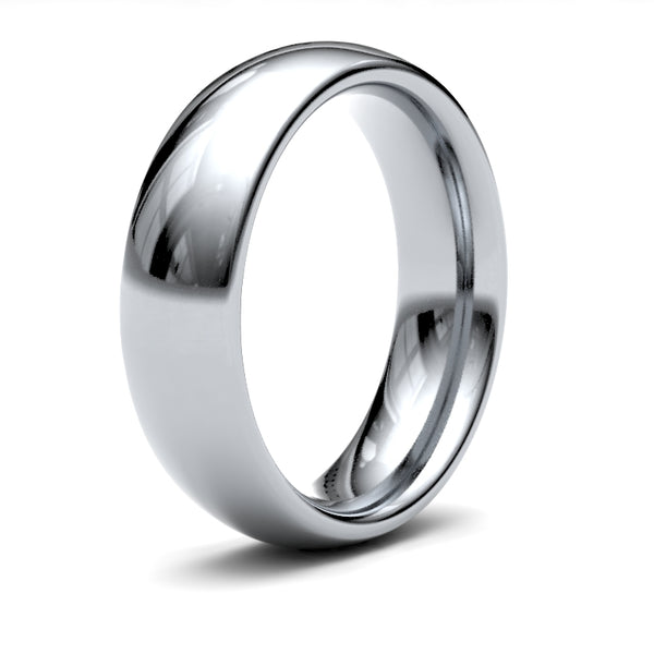 Bespoke hand-made 18ct White Gold 6mm premium weight Court wedding / commitment ring. Features a brilliant hand-polished mirror-like finish. Each Bespoke jewellery item is unique and made to order, and therefore will be despatched within 2 weeks. Please note that bespoke, personalised and engraved items cannot be returned.