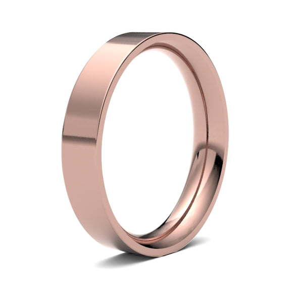 18ct Rose Gold Premium Weight Flat Court Profile Mirror Finish Wedding Ring