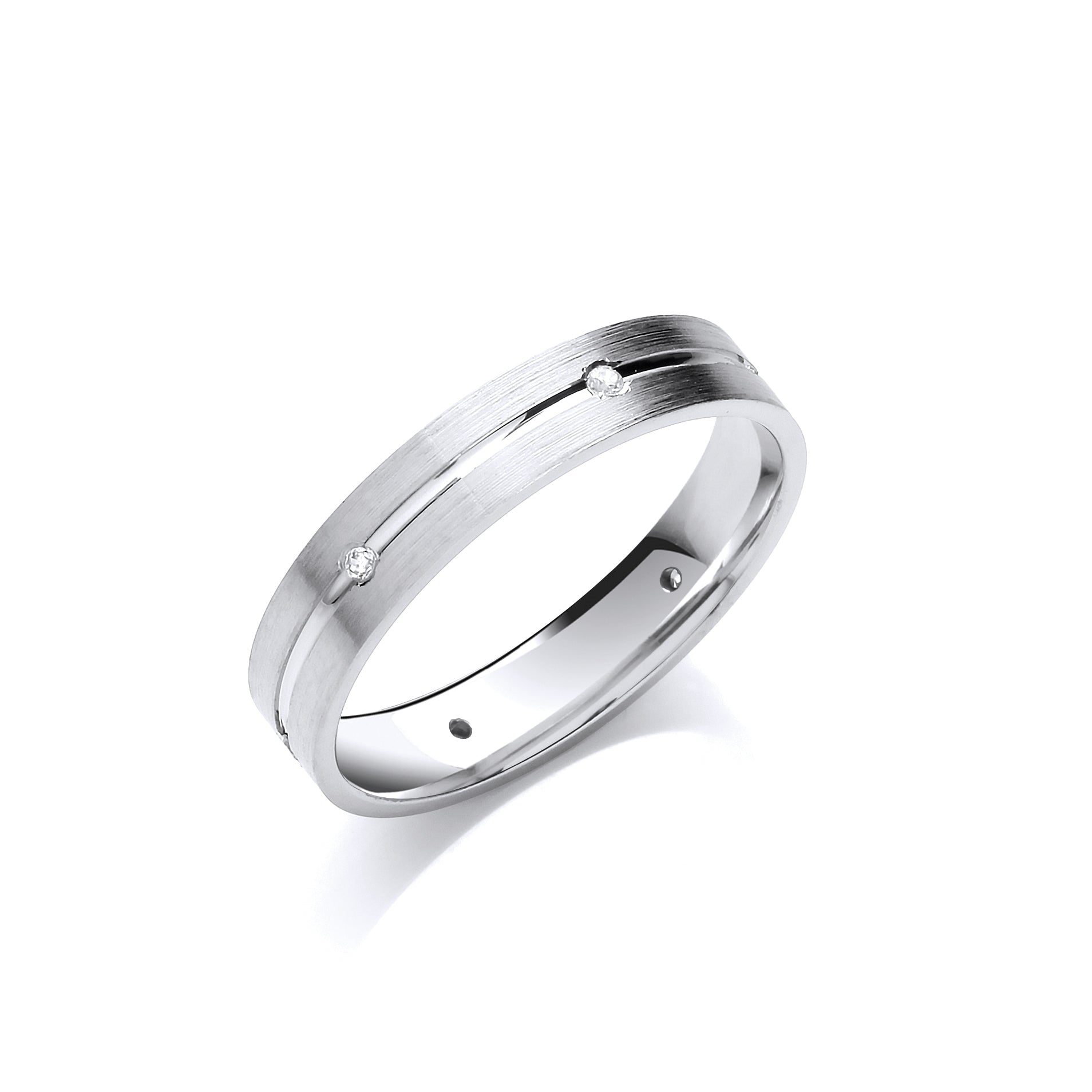 0.06ctw 6st Brilliant Cut Diamond Set 4mm Flat Court Centre Groove Wedding Band