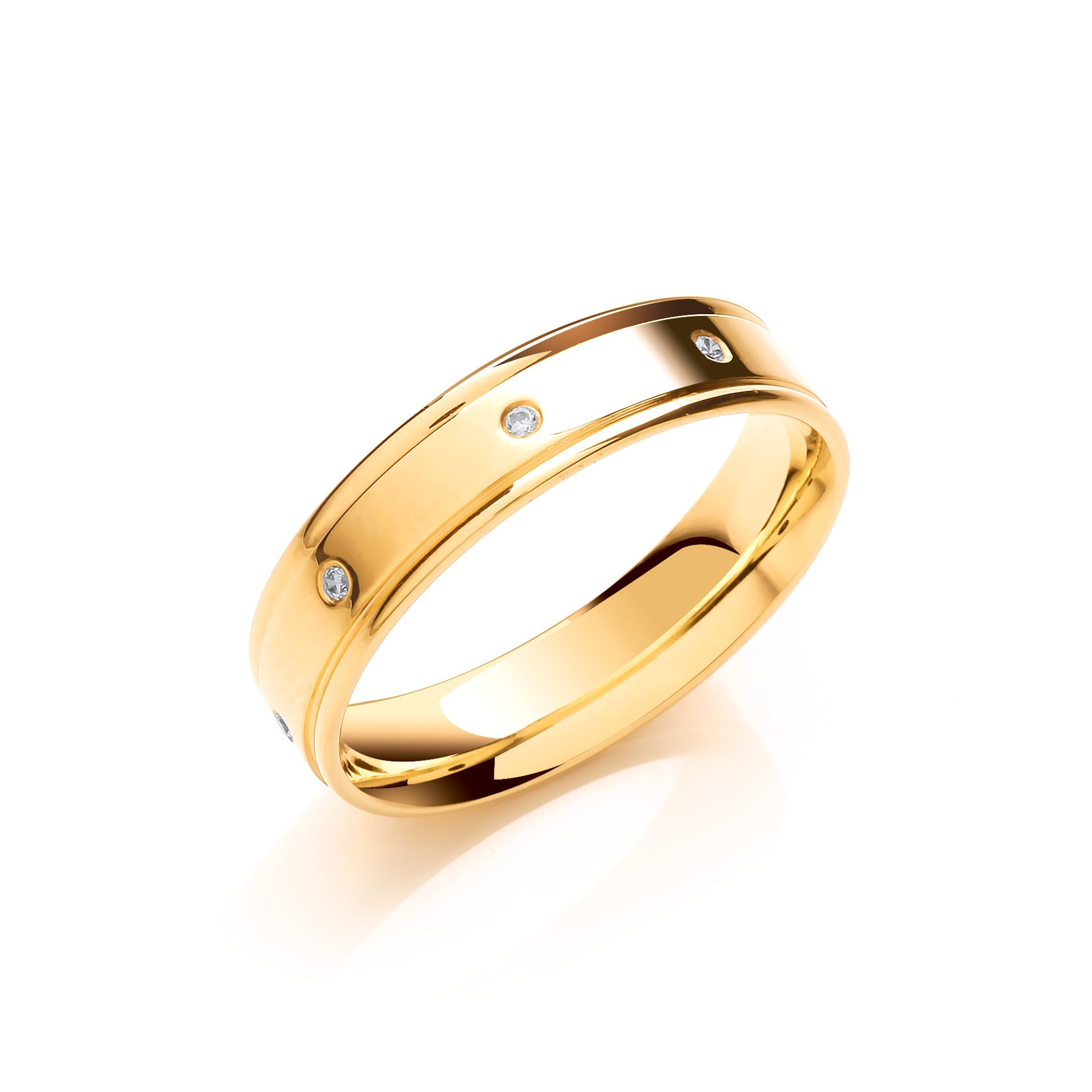 0.08ctw 8st Brilliant Cut Diamond Set 5mm Flat Court Track Edge Wedding Band